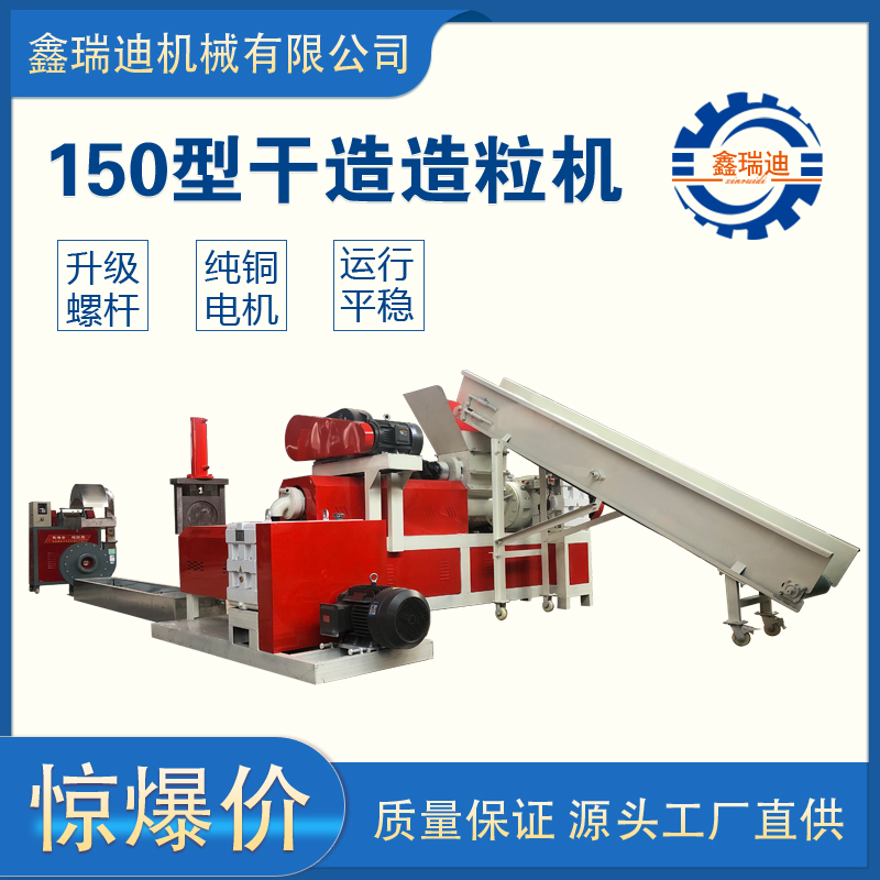 干造膜料造粒機(jī)可分為干造和水造,兩種機(jī)型不一樣,是將廢舊塑料進(jìn)行分類,將廢舊編織袋送入破碎機(jī)進(jìn)行破碎,然后經(jīng)過磨擦清洗機(jī)清洗,將破碎清洗好的料放入漂洗池里漂洗,讓編織袋所含雜質(zhì)進(jìn)行分離,雜質(zhì)沉淀,通過撈料機(jī)將我們所需的編織袋破碎料撈起備用;將漂洗好的料通過上料機(jī)投入造粒機(jī)主機(jī),通過擠壓、輸送、翻滾、加熱等程序達(dá)到塑化均勻擠出,再經(jīng)過副機(jī)擠壓拉條,冷卻后切粒。